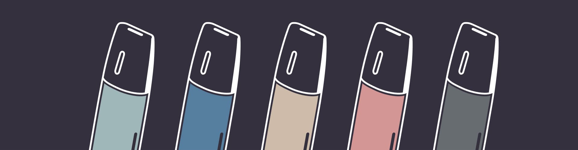 أقلام الفايب، وهي صغيرة الحجم ورفيعة، وتحتوي على خزّان قابل لإعادة التعبئة ولفائف تسخين قابلة للاستبدال.